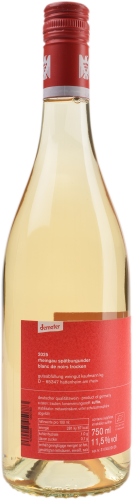 Sensorik:Helles Gelb mit zarten rosafarbenen Reflexen, Birne, reife Äpfel, weiße Johannisbeeren und etwas Rhabarber, Minze und untergründige Rauchnuancen, frisch, mit schönem Frucht-Säure-Spiel