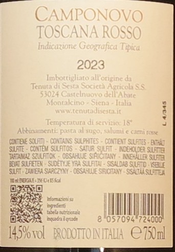 Hersteller/Importeur:Tenuta di Sesta, Località Sesta, 53024 Castelnuovo dell Abate (SI) - Italien