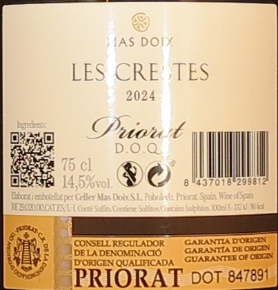 Hersteller/Importeur:Mas Doix, Carretera T-702, Km. 4, 43376 Poboleda - Spanien